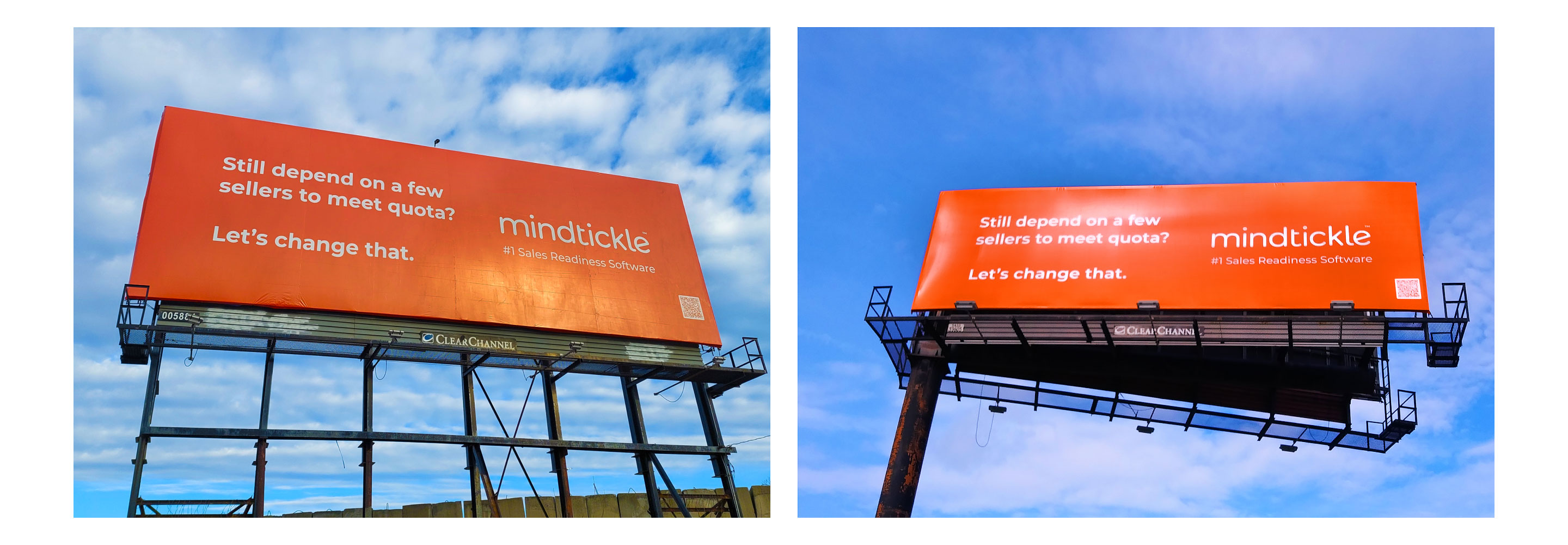 Our marketing team committed to a national billboard campaign for a year. This campaign was the first project I produced at Mindtickle—within the first week. We ran the billboards in four major US cities: San Francisco, Chicago, New York City, and Austin. The final design was clean and straightforward, with a flood of orange as a background, the Mindtickle logo, a headline, and a QR code.