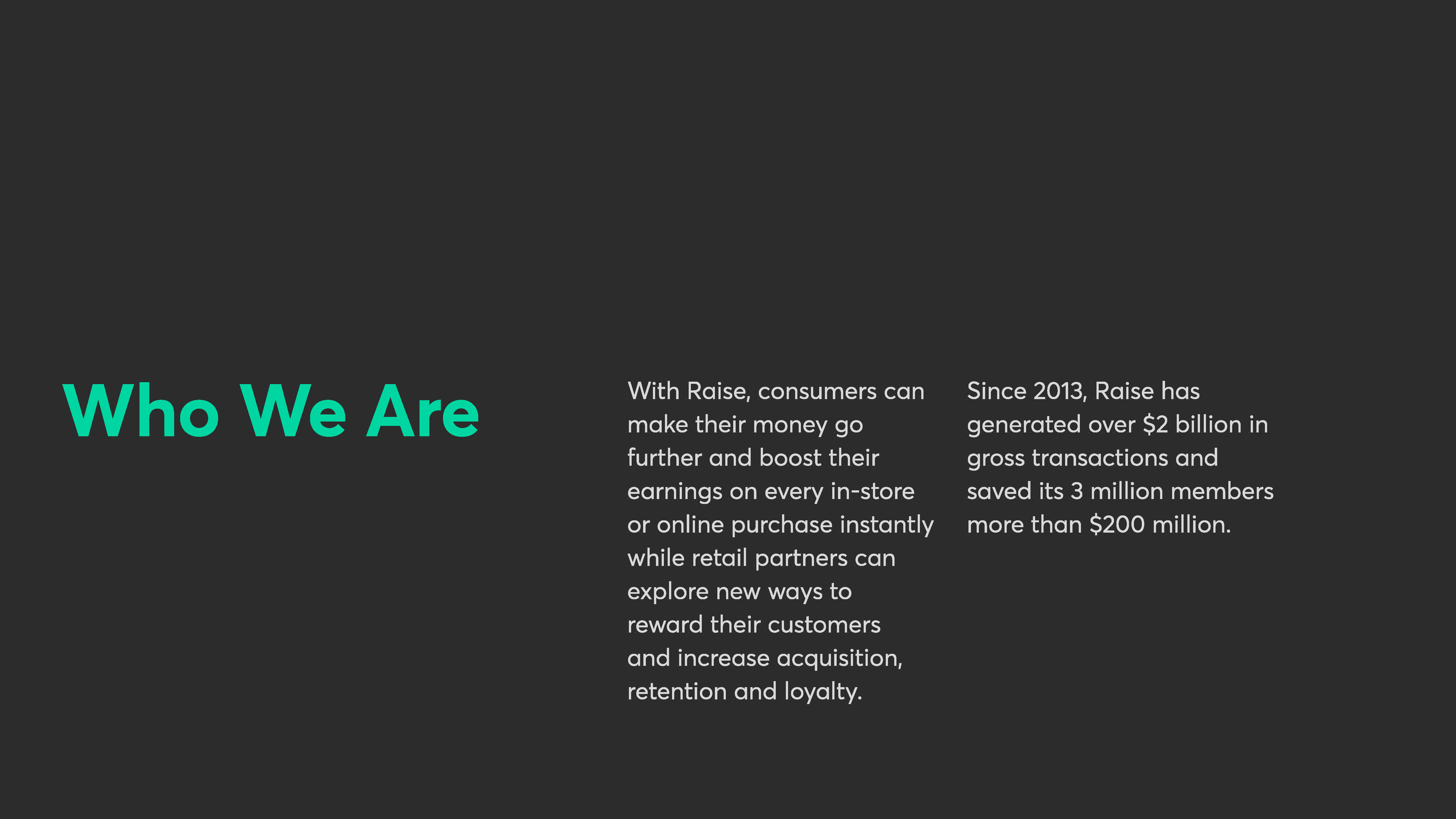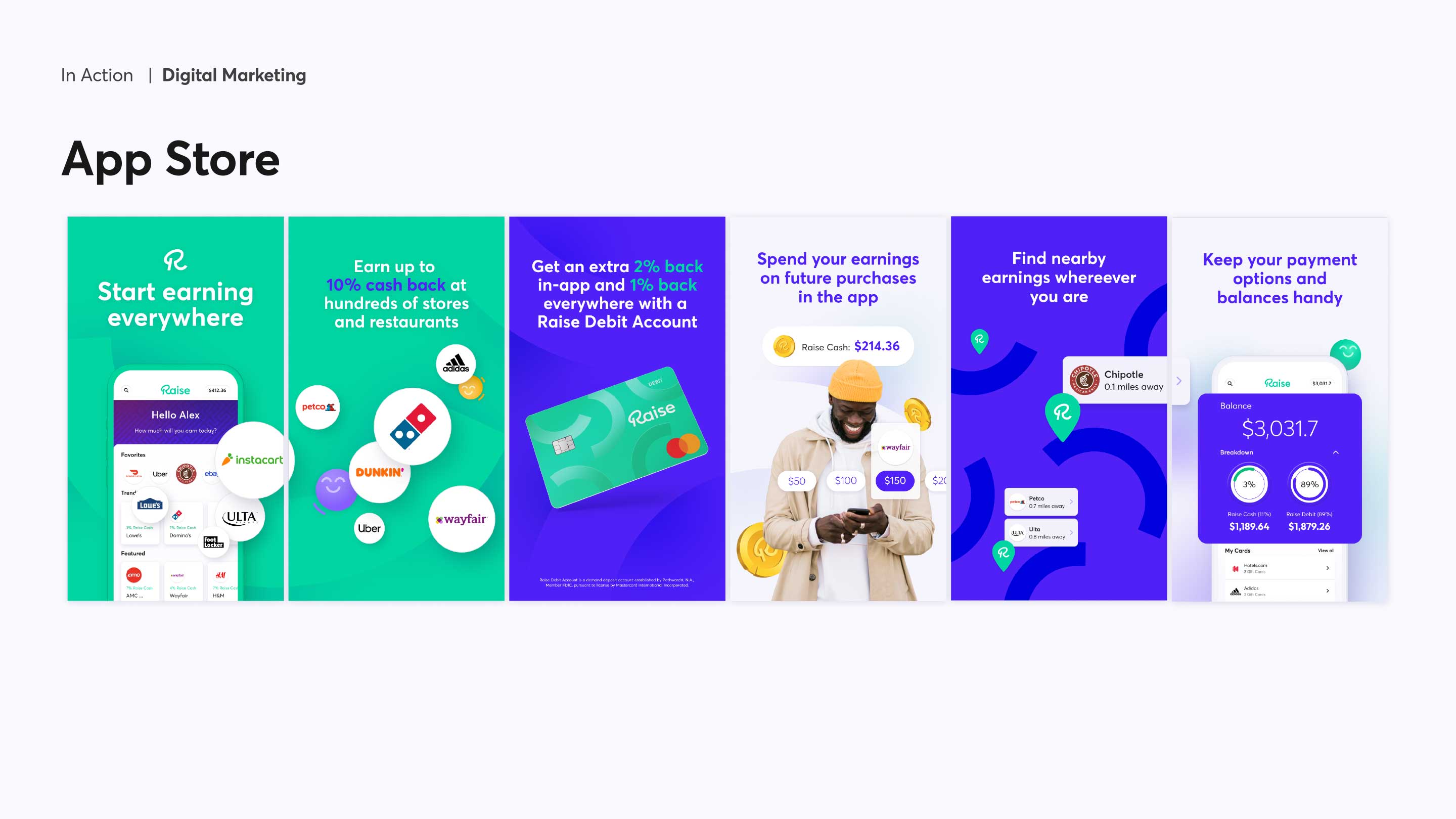 Over the past year, I led and rolled out a complete rebranding of Raise, sunsetted the two preexisting products called Raise Marketplace and Slide, branded and launched a new fintech mobile product called Raise, spun off a new sub-brand B2B SaaS product and produced all related inbound marketing materials with my team.
