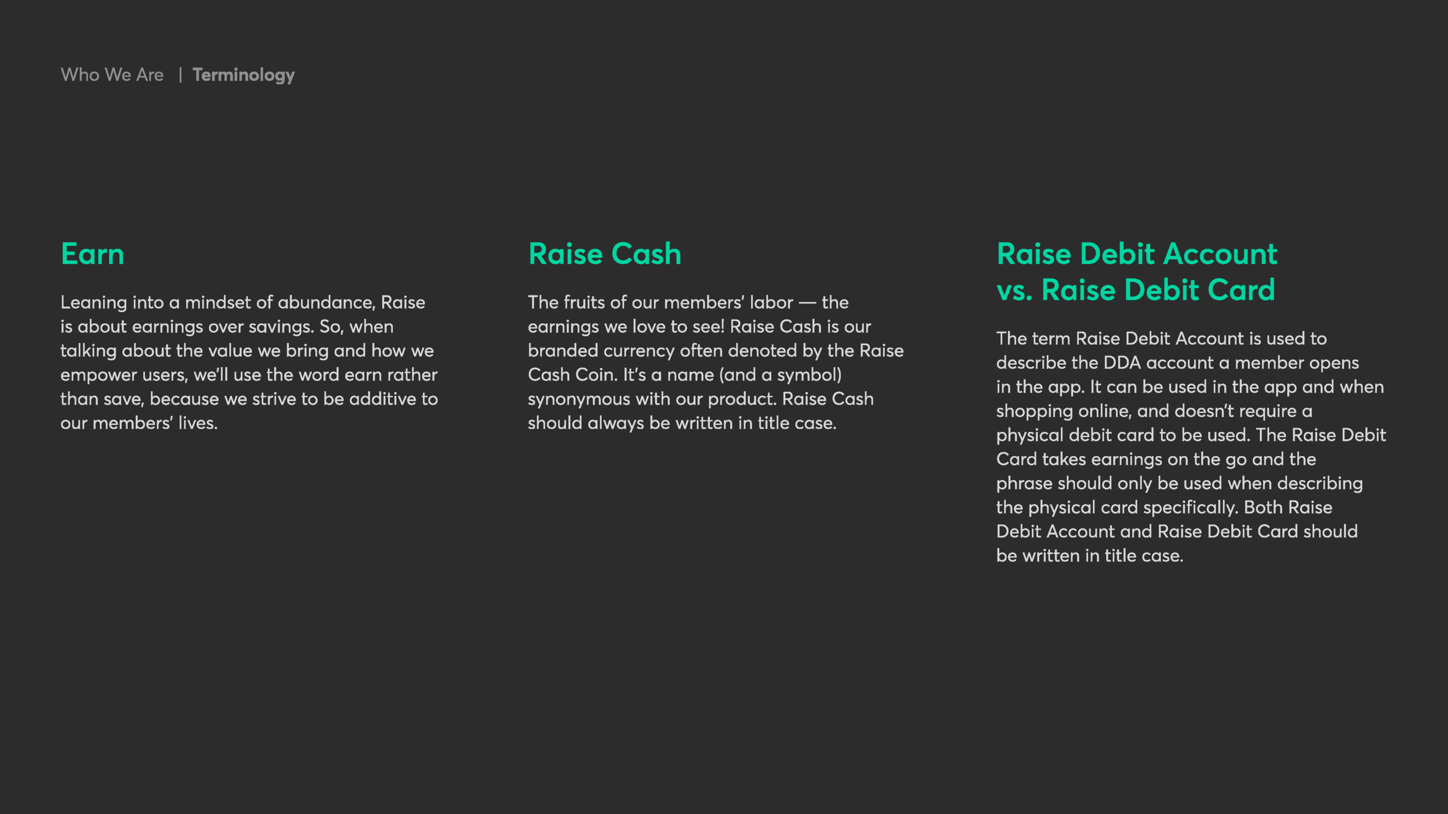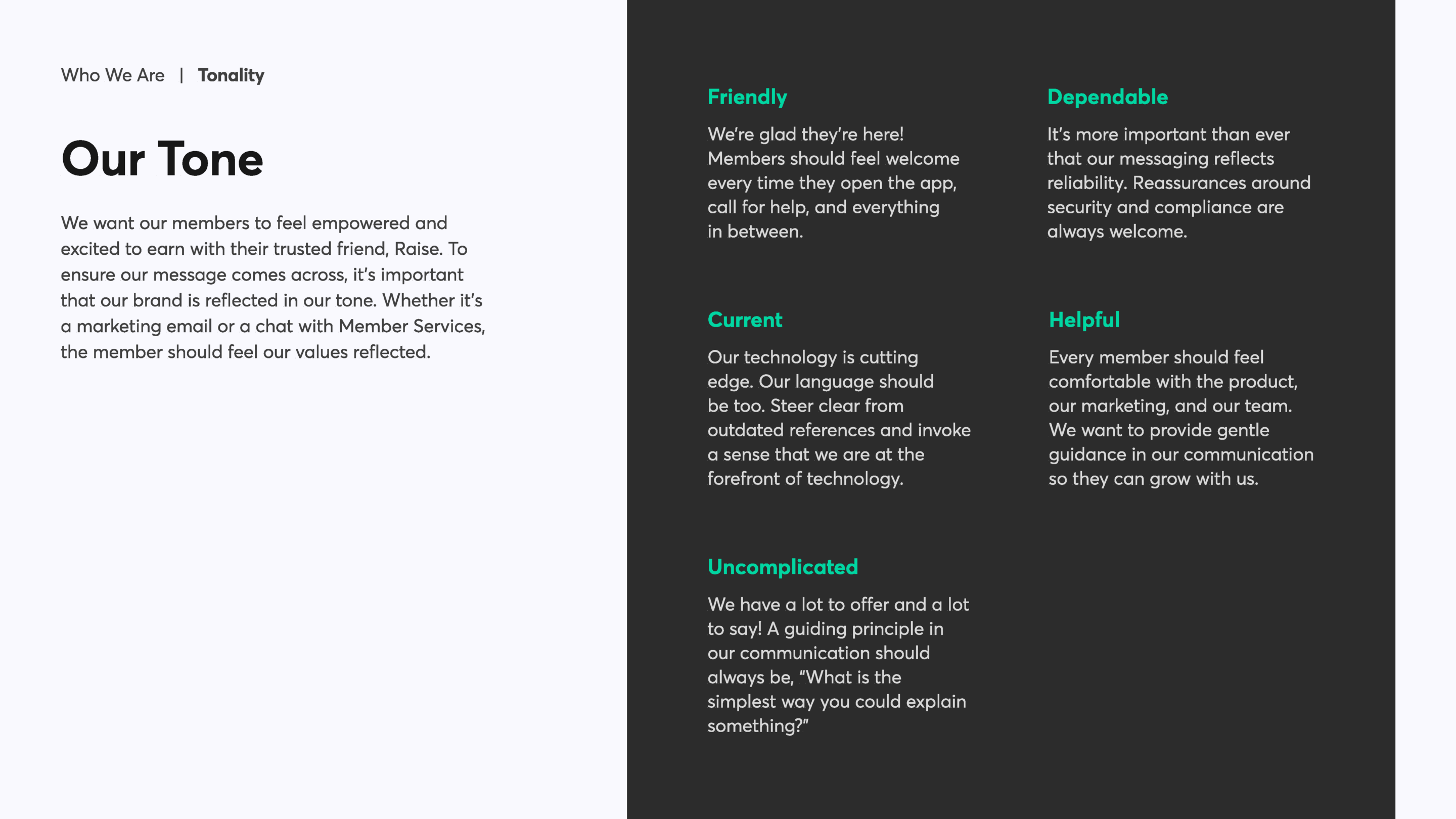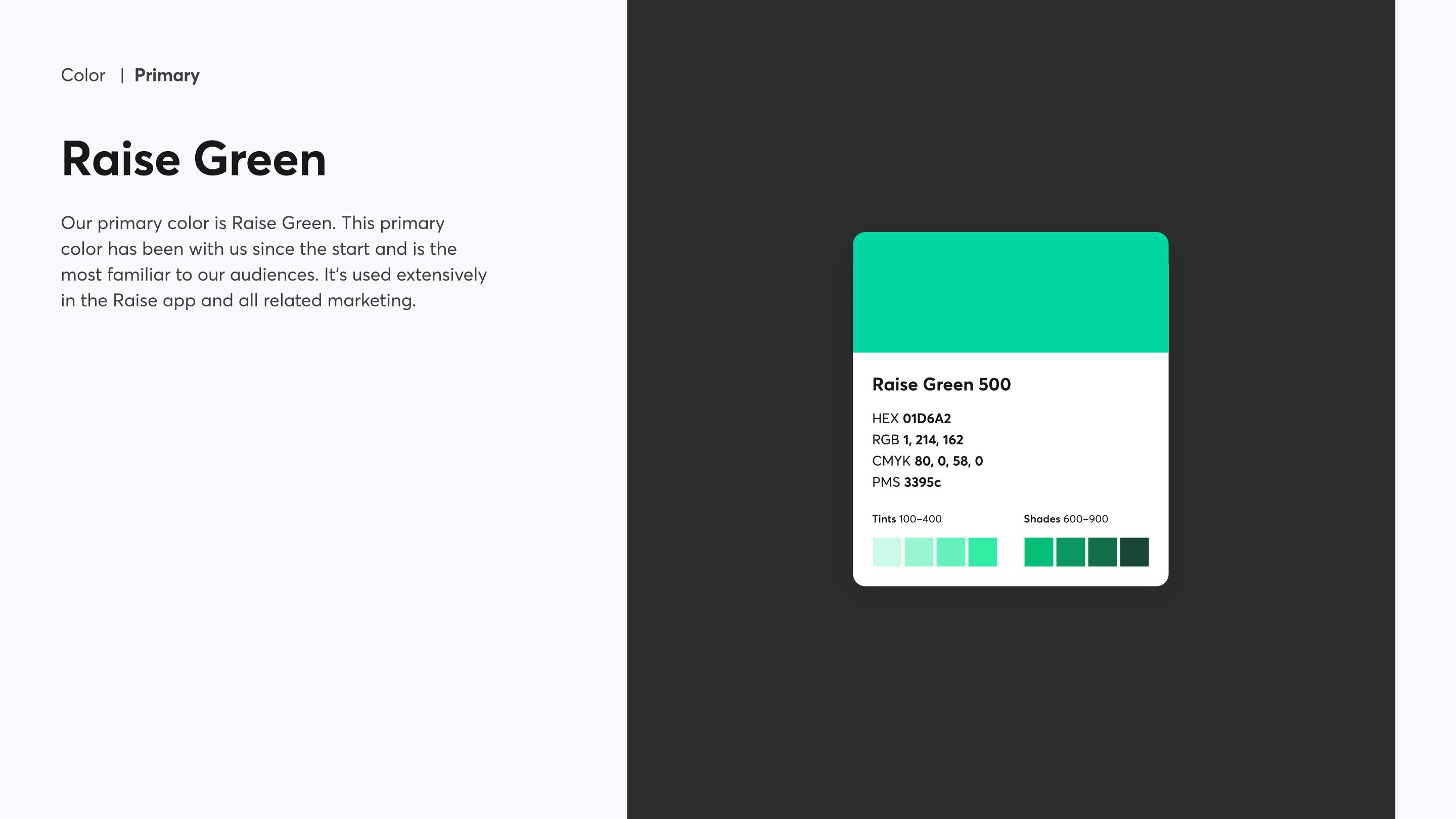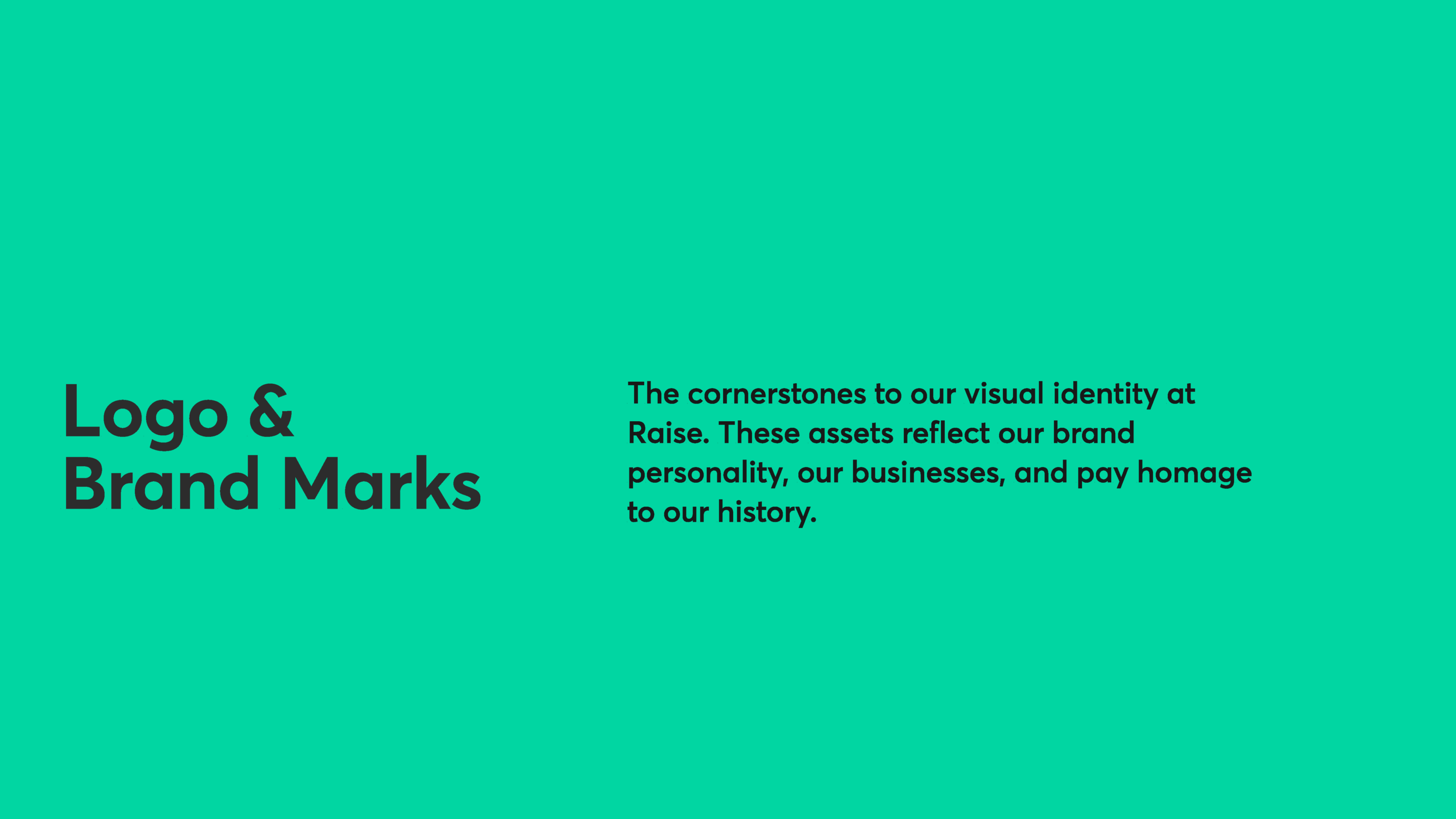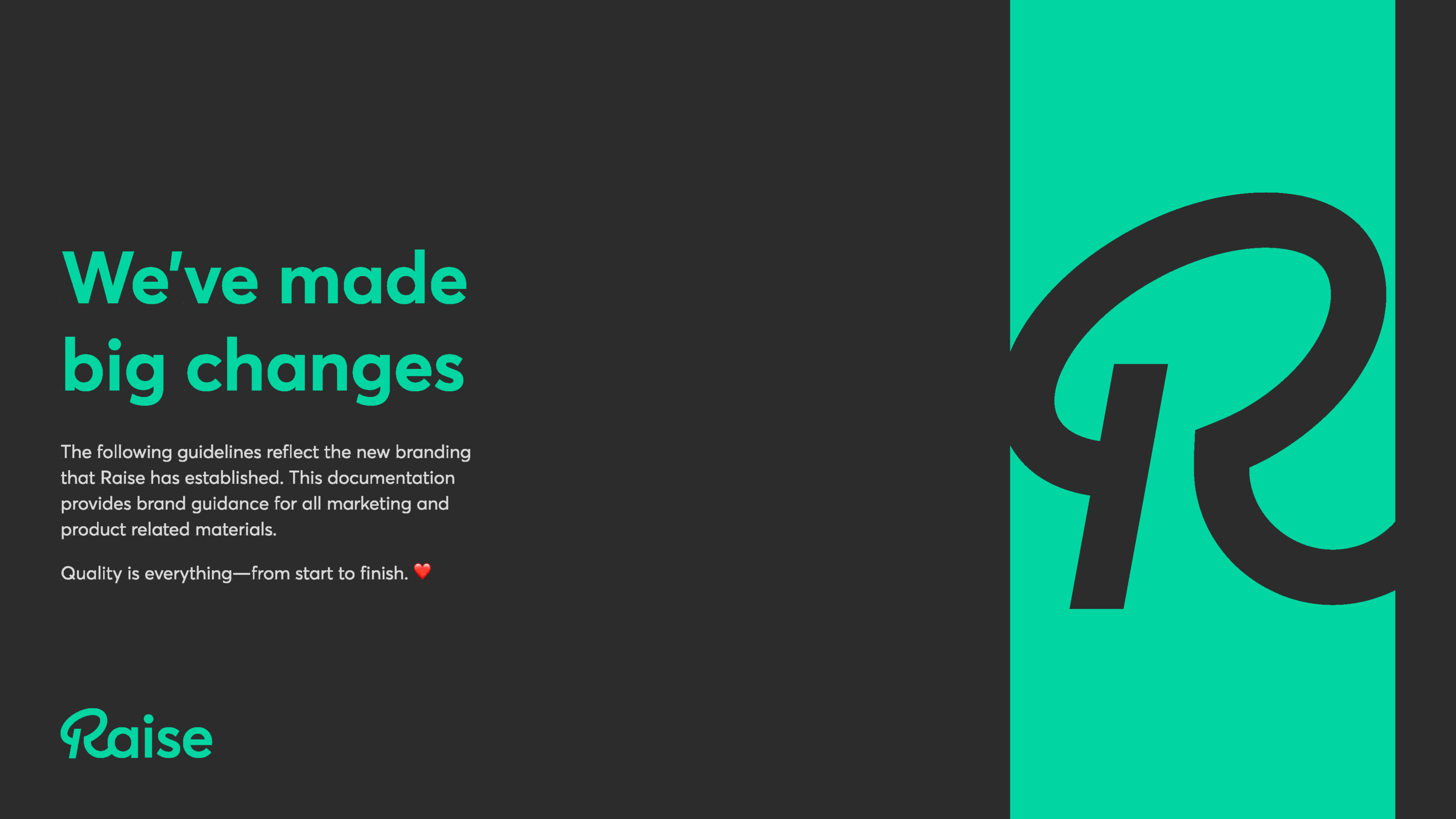 These brand guidelines culminate countless iterations and hours dedicated to finding Raise’s true north. Working with our small design team at Raise was a privilege. Thank you to Ted, Erin, Jay, Tony, and Chon for an excellent and rewarding collaboration on all the work we put into this one.